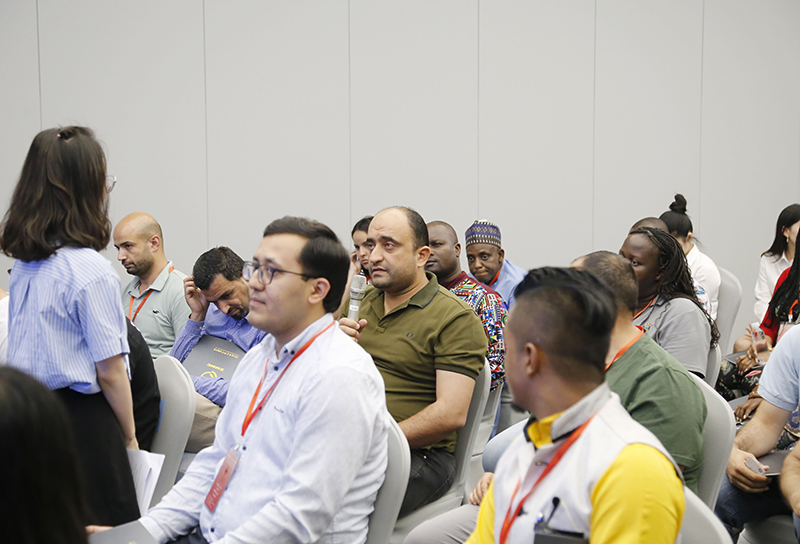 會上,鄭浩用英文介紹了杭鋼集團(tuán)的概況以及冶金物資的經(jīng)營發(fā)展情況,并與研修班學(xué)員互動,回答學(xué)員的現(xiàn)場提問。國際事業(yè)部相關(guān)業(yè)務(wù)負(fù)責(zé)人就具體業(yè)務(wù)內(nèi)容與研修班學(xué)員進(jìn)行交流。